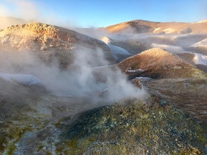 And that's how it looks like. The geysers and the steam coming out of the ground. All this sulfur frozen over night due to the extremely low temperature.