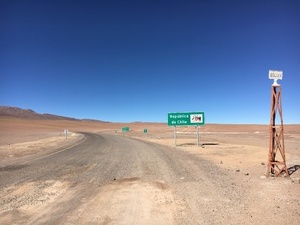 And that's what happens when you enter in Chile! There is finally... a road! And while driving one can already see the differences such as a good radio, road signs, seat belt for every one, etc. Huge differences!