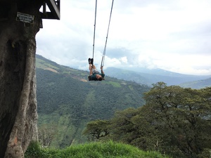 There is that swing on a tree in Baños, Ecuador, where you basically swing yourself above the void at the top of a mountain. It isn't that dangerous but the adrelanine rush for the first time is quite a thing!