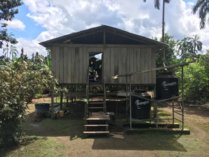 The indigneous of that region of the amazon build their houses following this architecture. They use the open part underneath to work or so. In this case they use it to craft hammocks.