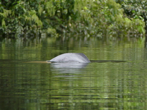 One of the main reason for us to go into the Ecuadorian rainforest are the pink dolphins. They look like normal dolphins but live in sweet waters. Those protected animals do not have any predators, not even the caimans! Sadly they do not jump out of the water. Photo by Kerstin Kaifel