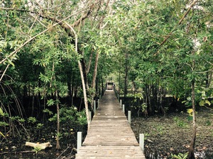 Behind the Mecana beach lays a big swamp. Wooden platforms and bridges have been constructed to get over it. That one leads to some private houses and a river.