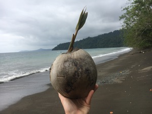Once again, black sand, empty beach, palm trees and coconuts <3